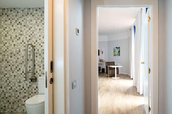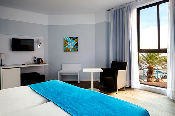 Our Adapted Rooms are designed with the needs of guests with reduced mobility in mind. These rooms, although lacking a balcony or terrace, have a fully adapted bathroom to ensure comfort and accessibility. In addition, we offer amenities such as free Wi-Fi, kettle with a welcome kit of coffee and tea, fridge, satellite TV and a safe available at extra cost. Our priority is to create a welcoming and functional environment, ensuring that all travellers enjoy a comfortable stay. Discover the tranquillity and comforts of our Adapted Rooms, where accessibility merges with our commitment to offer an inclusive experience at Hotel Alexandre Teguise Playa!