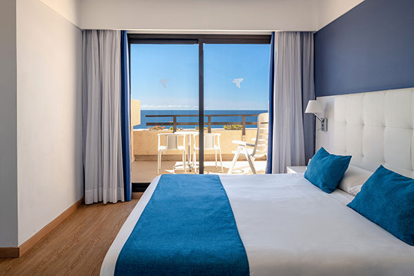 Experimenta la elegancia y el confort en nuestra Junior Suite, ubicada en la planta 6 con una decoración moderna y ambiente acogedor. Deléitate con las maravillosas vistas al mar desde tus 2 balcones/terrazas privados. La suite cuenta con un amplio salón y dormitorio, donde cada detalle está cuidado al máximo para que lo disfrutes. Además, te ofrecemos Wi-Fi gratuito, boiler con pack de bienvenida de café y té, nevera, TV satélite y una cena semanal en nuestro restaurante a la carta (para estancias mínimas de 7 noches). ¡Sumérgete en la experiencia de lujo y vistas panorámicas que solo nuestra Junior Suite puede ofrecerte!